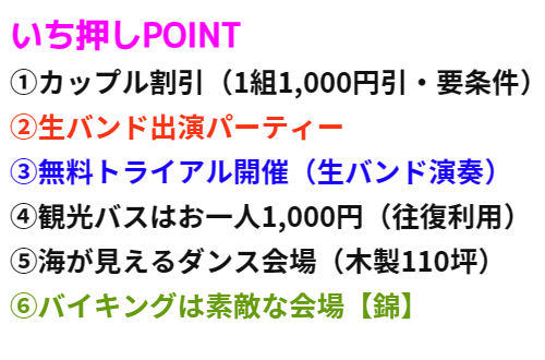 | トライアルも生バンド演奏で踊れます(夜のパーティー) |