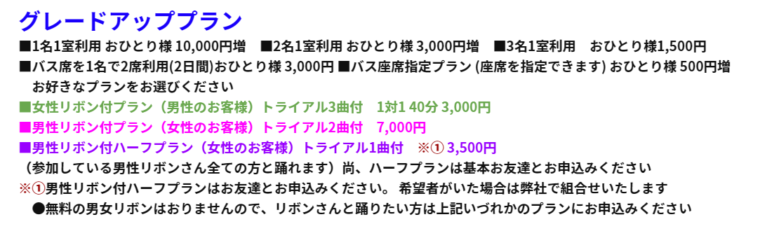 | スタンダード&ラテン、ぜひご出場ください。お客様同士は何種目でも無料、男女リボンとは1曲500円とリーズナブル |